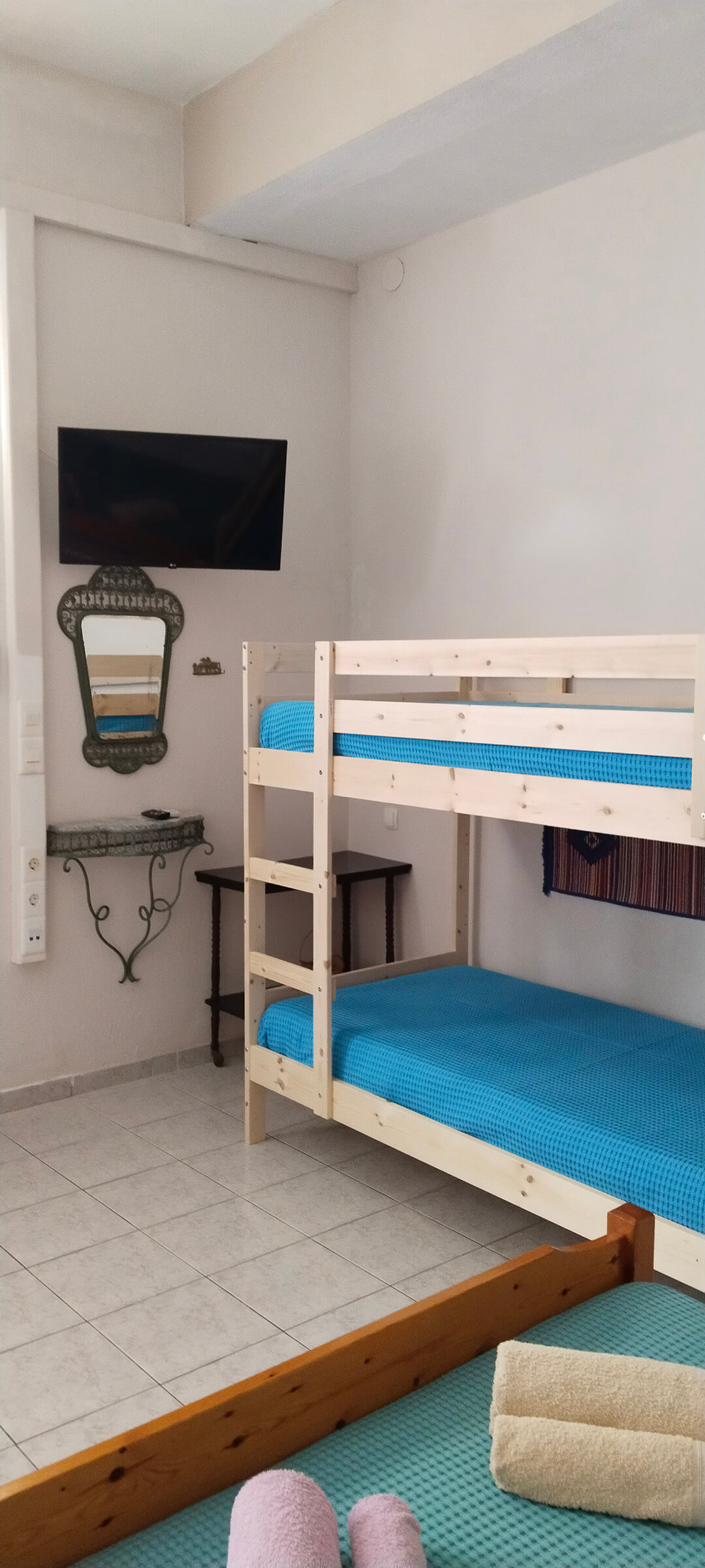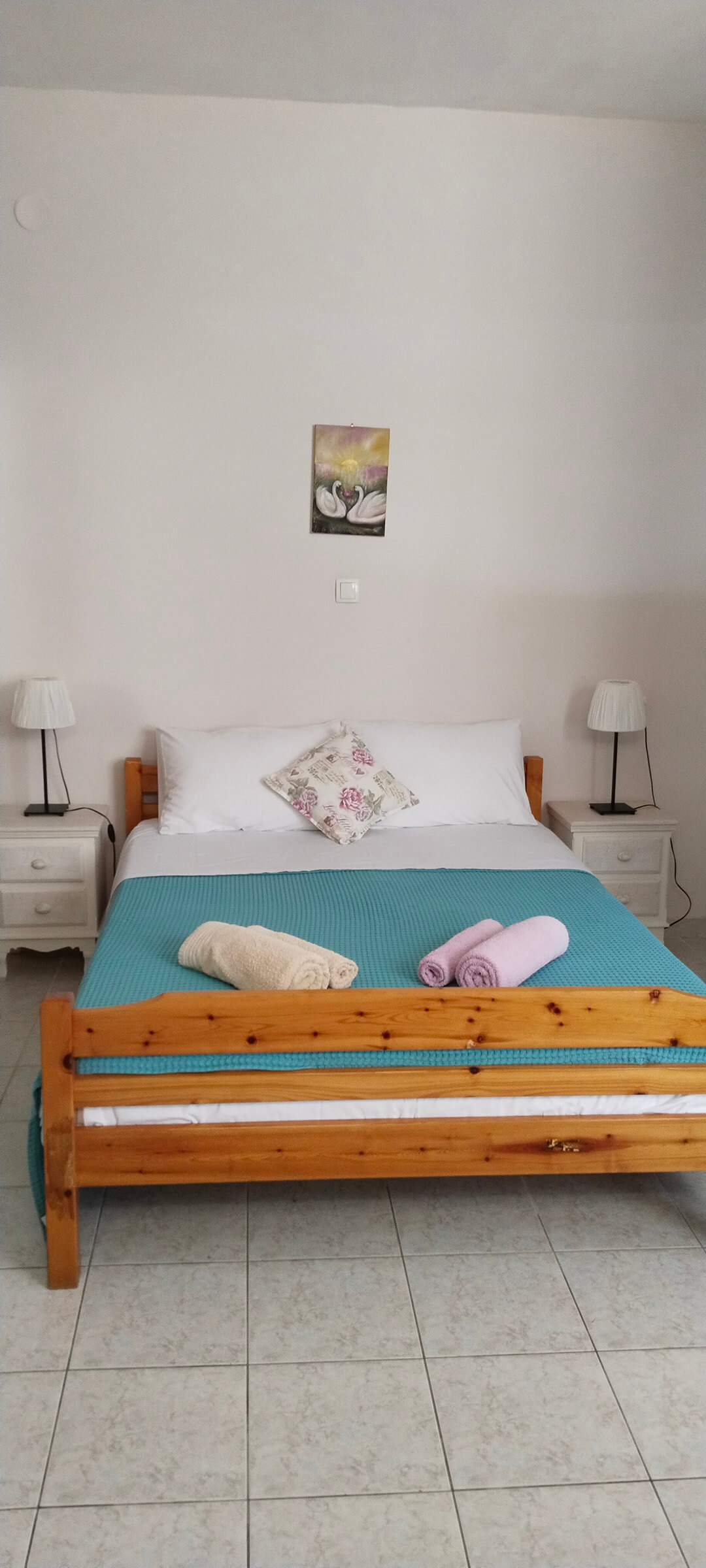 Our studio has 1 double bed and 1 single bed, 1 sofa single bed, a kitchen, a bathroom and a terrace with garden view!